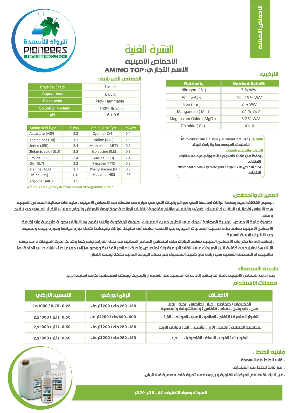 تساعد الأحماض الأمينية النباتات على امتصاص العناصر الغذائية من خلال الأوراق وتحريكها، فضلاً عن تعزيز حركة المبيدات داخل جسم النبات، مما يزيد من كفاءة تأثير المبيدات على الآفات الزراعية ويُسهل امتصاص العناصر الغذائية وتحركها للوصول إلى جميع أجزاء النبات وفقًا لاحتياجاته. وبالتالي، تكون النتيجة النهائية هي زيادة في كمية المحصول مع ضمان جودة عالية في شكل وحجم الثمار.