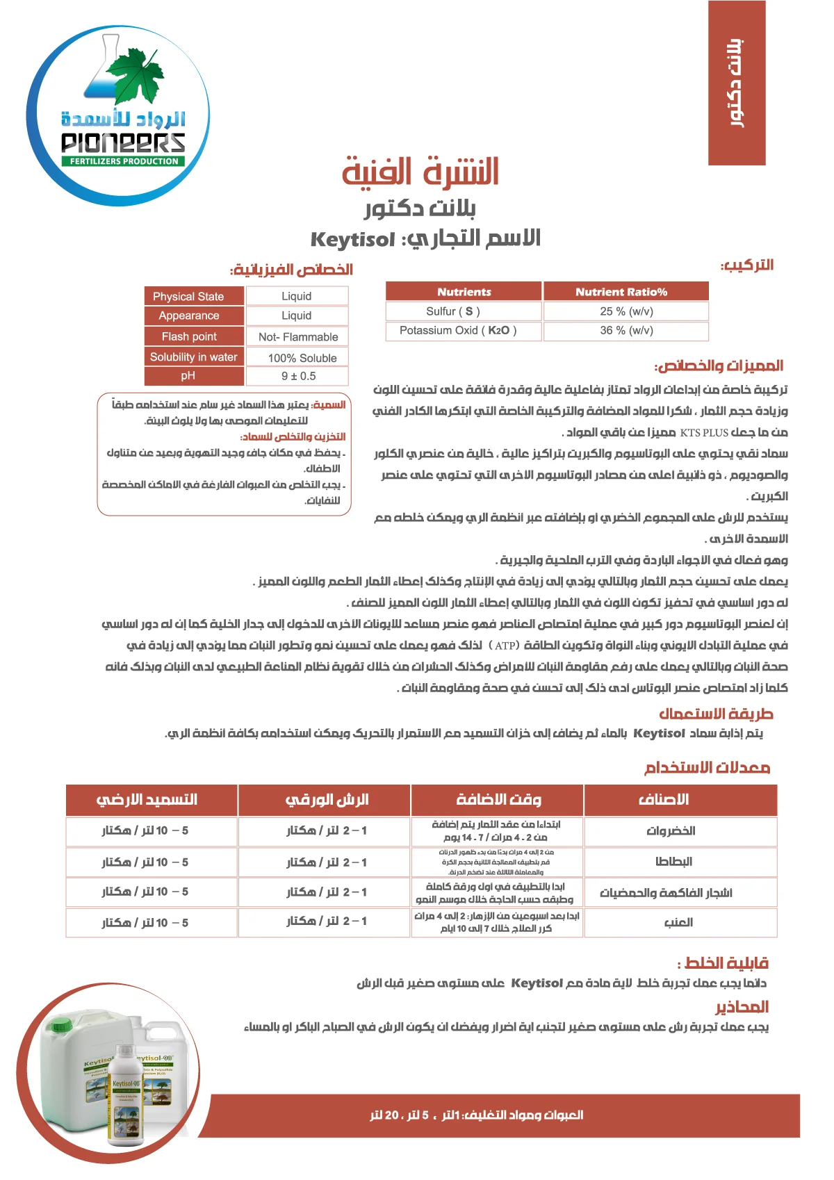 تُعَدُّ KTS PLUS منتجاً متميزاً بفضل تركيبتها الخاصة التي تعتمد على إبداع الأوائل، وتتميز بفعاليتها العالية وقدرتها الفائقة على تحسين اللون وزيادة حجم الثمار، وذلك بفضل الإضافات والتركيبة الفريدة التي وضعها الفريق الفني المختص.