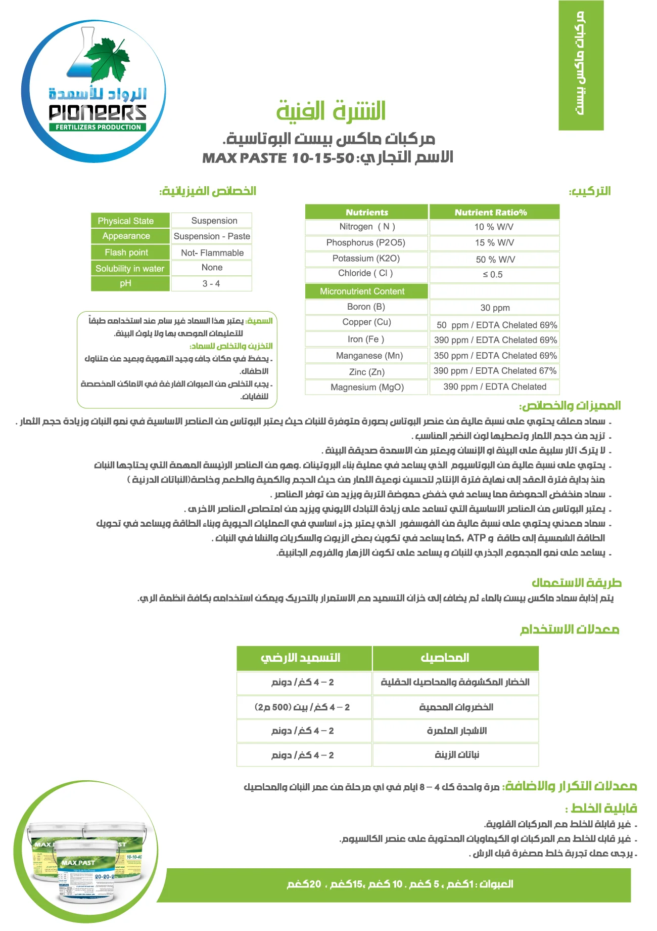 MAX PAST Potassium is a meticulously formulated powder fertilizer designed to comprehensively fulfill the nutritional requirements of plants. This product includes essential Trace Elements that confer numerous benefits to plant health, including: